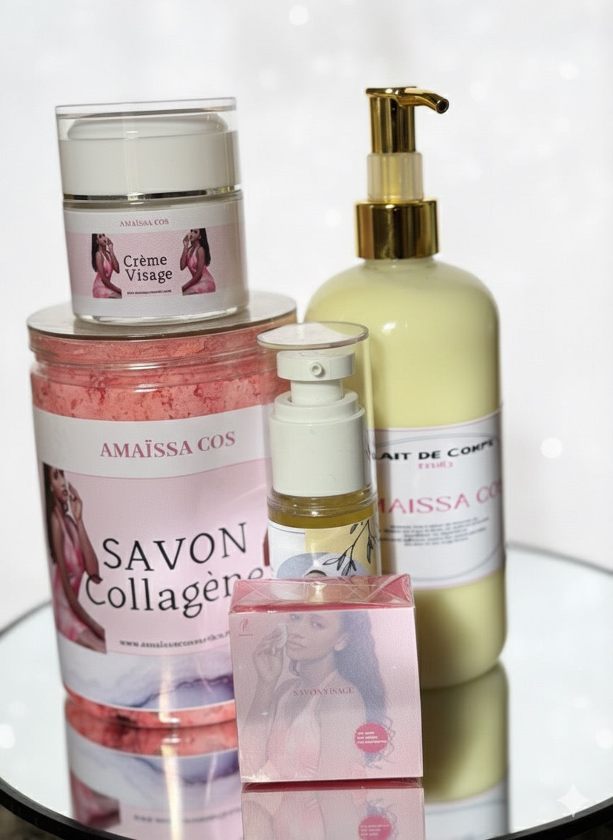 - Savon au collagène : nettoie en douceur, raffermit la peau et stimule son élasticité.